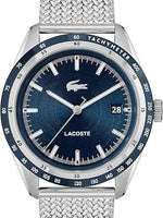 Lacoste Men’s Everett Mesh Watch – Stainless Steel Case & Bracelet, Blue Dial, Quartz Movement, Date Function, Durable Mineral Crystal