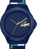 The Lacoste Neocroc Men's Quartz Watch is a vibrant expression of style, blending bold branding with a sporty edge. Featuring a lightweight TR90 composite case, a striking blue dial with oversized Lacoste graphics, and a comfortable silicone strap with multicolor accents, this timepiece is made to stand out. Its quartz movement ensures precise and low-maintenance timekeeping, while the scratch-resistant mineral crystal keeps it looking fresh. Water resistant for everyday wear, the Neocroc is perfect for fashion-forward individuals who want their accessories to make a statement. With its geometric shapes, iconic crocodile motif, and streetwear flair, it’s more than a watch—it’s a bold style statement.