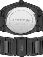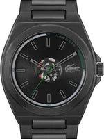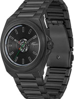 Lacoste Reno Men’s Quartz Watch – 42mm Black Ionic Plated Stainless Steel Case, Transparent Silicone Strap, Skeleton Dial, Water Resistant 50m
