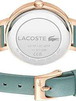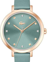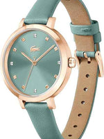 Lacoste Riga Women’s 3H Quartz Watch – 34mm Sea Green Crystal Dial, Rose Gold Stainless Steel Case, Leather Strap, Water Resistant 50M – Elegant Minimalist Timepiece