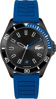 Infuse your everyday style with the Lacoste Tiebreaker Men’s Quartz Watch, a timepiece that balances sporty energy with contemporary sophistication. Featuring a bold black ionic-plated stainless steel case and a matte sunray dial, this 43mm watch is elevated with a two-tone aluminum bezel, reflector ring, and raised indexes. The iconic Lacoste crocodile at 3 o’clock adds signature flair, while the durable blue silicone strap ensures comfort and flexibility for active lifestyles. Equipped with a reliable quartz movement, this watch delivers precise timekeeping along with a practical date display. A scratch-resistant mineral crystal protects the dial, preserving its refined aesthetic. Designed for men who embrace both performance and style, the Lacoste Tiebreaker is the perfect accessory for work, weekends, and everything in between.