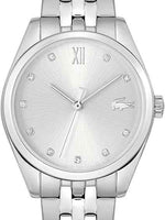 Lacoste Tuilerie Women’s Quartz Watch – 32mm Stainless Steel Case, Plissé-Textured Dial, Five-Link Bracelet, Crystal Indexes, Silver