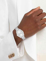 Refined yet versatile, the Lacoste Tuilerie is the perfect companion for women who appreciate understated elegance. Its 32mm stainless steel case houses a plissé-textured dial adorned with an applied Lacoste crocodile at 3 o’clock, a Roman numeral at 12, and 10 sparkling crystal indexes for a touch of glamour.