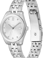 The polished five-link stainless steel bracelet ensures durability and a comfortable fit, while the quartz movement guarantees precise timekeeping with minimal upkeep. A durable mineral crystal protects the dial from scratches, making this watch a reliable choice for everyday wear.