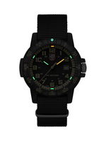 The black dial is equipped with Luminox Light Technology, providing constant visibility day and night for up to 25 years without external power. A unidirectional rotating bezel, protected crown, and hardened mineral glass enhance reliability, while the date function adds everyday practicality.