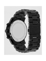 Make a statement with the Michael Kors Runway Men’s Black Stainless Steel Chronograph Watch, a sporty and sophisticated timepiece designed for the modern man. This oversized 45mm watch features a black stainless-steel case and dial with bold numerals, delivering a powerful presence on the wrist. The chronograph quartz movement includes three subdials for seconds, minutes, and 24-hour time, along with a date window and stopwatch functionality for precision performance.