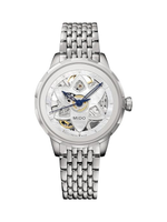 A sapphire crystal with double-sided anti-reflective treatment provides clarity and scratch resistance, while the see-through exhibition case back reveals the mechanical movement within. With a 15 mm band width and 9.86 mm case thickness, this watch offers comfort and refinement, making the Rainflower Blossom an elegant and practical timepiece for women who appreciate style and precision.