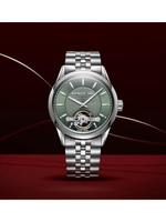 The watch features a captivating green dial with an open-heart design, revealing the diamond-polished balance wheel—the rhythmic heart of the movement—creating depth, motion, and visual intrigue. Applied indexes ensure clarity and balance, while the contemporary layout reflects the confident spirit of the Freelancer collection.