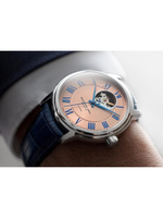 The 40mm stainless steel case offers ideal proportions for modern wrists, while the rich blue leather strap adds a striking contrast, making this watch perfect for business attire, formal occasions, or elevated everyday wear. Finished with a scratch-resistant sapphire crystal, the Maestro embodies Raymond Weil’s commitment to craftsmanship, precision, and enduring style.