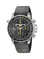 Crafted with a stainless steel and titanium case, the watch offers exceptional strength while remaining lightweight and comfortable on the wrist. The robust 46mm case diameter delivers commanding wrist appeal, complemented by a durable black rubber strap that enhances wearability and sport-luxury styling.