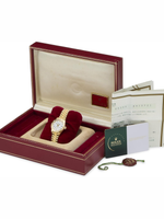 The Pre-Loved Rolex Diamond 18K Gold Bark Datejust President 69288 26mm is a masterpiece of elegance and Swiss watchmaking. Crafted in 18K yellow gold with a distinctive bark-finished Oyster case, this ladies’ timepiece features a natural-cut diamond bezel and a refined white dial with Roman numerals, complemented by a magnified Cyclops date window. Powered by Rolex’s self-winding automatic movement with quickset date, it offers both precision and reliability. The iconic President bracelet with hidden clasp ensures comfort while maintaining a luxurious aesthetic. Presented in excellent pre-loved condition, including branded box and papers, this 26 mm Datejust President is the perfect blend of sophistication, heritage, and lasting investment value for collectors and style enthusiasts alike.