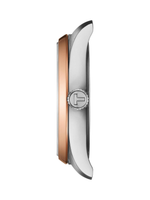 The Tissot PR 100 34mm is a refined, modern classic designed for everyday elegance. Its sleek 316L stainless steel case with rose gold PVD coating gives the watch a warm, luxurious finish, beautifully complemented by a clean index dial and practical date display. Powered by a dependable Swiss quartz movement, it ensures precise timekeeping with minimal upkeep. The soft leather strap, equipped with a quick-release interchangeable system, allows effortless style changes, while the standard buckle closure provides a secure and comfortable fit. With 10 bar (100 m) water resistance, this timepiece is built to keep up with both daily routines and weekend outings. Backed by a 2-year international warranty, the Tissot PR 100 delivers efficiency, durability, and understated sophistication.