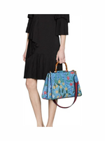 Gucci Flora Azure Shanghai Large Floral Handbag – Bamboo & Leather, Made in Italy