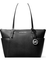 Michael Kors Jet Set Top Zip Tote – Black Leather with Silver-Tone Hardware