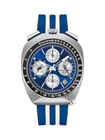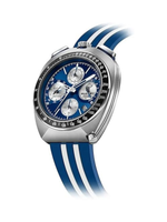 43mm stainless steel case with blue racing-inspired dial