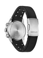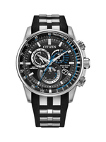 The Citizen Men’s Eco-Drive Sport Luxury PCAT Watch is a bold, mission-ready timepiece built for precision and performance. Inspired by classic aviation instruments, this limited-edition model (1,500 pieces worldwide) features a 43mm silver-tone stainless steel case, screw-down pushers, and a crown protected by rugged guards. Its stainless steel and polyurethane strap delivers durability and comfort for active wear. The highly functional dial showcases a tachymeter bezel, chronograph, world time, perpetual calendar, and power reserve indicator. Powered by Citizen’s advanced Eco-Drive technology, it runs on any light source and never requires a battery change. With atomic timekeeping and radio-controlled synchronization across 43 cities worldwide, this PCAT watch ensures unmatched accuracy. Finished with 200-meter water resistance, it’s designed for serious sport, travel, and adventure.