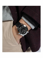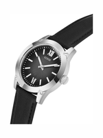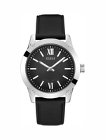 Designed for the modern gentleman, the GUESS Men’s 44mm Watch embodies understated luxury and everyday confidence. This refined timepiece features a 44mm silver-tone stainless-steel case with a bold black analog dial, creating a sharp contrast that’s both stylish and versatile. The smooth black leather strap offers classic appeal and all-day comfort, secured with a polished buckle closure. Driven by precise quartz movement, it ensures accurate timekeeping with minimal maintenance. Ideal for both work and weekend wear, this GUESS watch blends fashion-forward design with lasting functionality—perfect for those who appreciate clean lines, quality materials, and timeless craftsmanship.