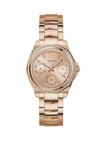 GUESS Women’s 36mm Rose Gold-Tone Multifunction Watch | Crystal Accents & Stainless Steel Bracelet