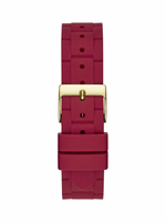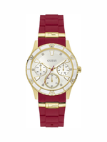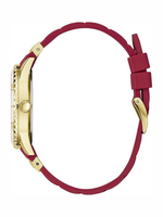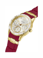 GUESS Women’s Gold-Tone Red Silicone Watch | 38mm Multifunction White Dial | Stain-Resistant Strap & Quartz Analog Movement