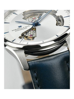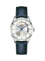 Hamilton Jazzmaster Open Heart Automatic Watch – Swiss Made, 40mm Stainless Steel Case, Silver Dial, Blue Leather Strap