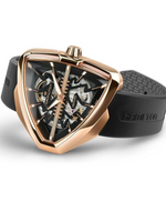 Hamilton Ventura Elvis80 Skeleton Automatic Watch – Swiss Made, 42.5x44.6mm Rose PVD Stainless Steel Case, Black Dial, Black Rubber Strap