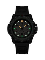 Equipped with a black rubber strap and secure deployment clasp, the watch ensures a comfortable and reliable fit for all-day wear in demanding environments. Powered by a Swiss quartz movement, it provides accurate timekeeping under any conditions.