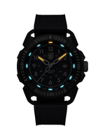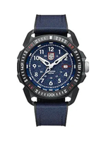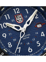 Built with a 46mm CARBONOX case and protected by a robust sapphire crystal with anti-reflective coating, this watch is both resilient and lightweight. Its blue dial is complemented by a black rubber strap with a blue textile overlay, offering comfort and a secure fit. The fixed bezel, protected crown, and date function enhance practical functionality, while Luminox Light Technology provides continuous visibility in any lighting for up to 25 years.