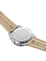 With 200-meter water resistance, a screw-in crown, and a sapphire crystal with anti-reflective coating, this Swiss-made chronograph is engineered for diving, adventure, and everyday statement wear.
