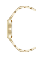 A white outer minute track enhances readability, while the mineral crystal lens protects the dial from everyday wear. The gold-tone adjustable link bracelet offers a comfortable, secure fit and is finished with a double-locking foldover clasp for added safety.