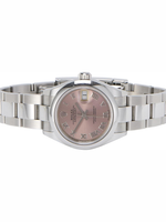 • Pink dial with Roman numeral hour markers and Cyclops date window