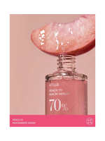 Reveal radiant, hydrated, and even-toned skin with the Anua Peach 70 Niacinamide Serum, a daily brightening serum infused with 70% peach extract and 5% niacinamide. This lightweight, clean-beauty formula gently brightens dull skin, improves texture, minimizes pores, and supports the skin barrier. Enriched with triple hyaluronic acid and Desert Yeast Oil, it delivers deep, long-lasting hydration, leaving skin plump and soft. The natural light pink hue is derived from Vitamin B12, without artificial coloring, reflecting its clean beauty ethos. Sustainable and eco-conscious, this serum comes in a glass bottle and uses upcycled peaches grown on Jeju Island. Ideal for dry skin, it promotes a smooth, radiant, and luminous glass-skin finish suitable for daily use, morning and night.