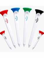 Upgrade your golf setup with Callaway Par Tee Plastic Golf Tees, engineered for durability, precision, and maximum performance. Each tee features a white plastic base with a black rubberized cup top, providing a low-spin launch that enhances ball distance and control. The co-molded construction ensures long-lasting use, while the stiff, sharpened tips make insertion easy and allow the tees to double as groove cleaners and divot repair tools. Ideal for use on the course or driving range, these tees are designed for golfers seeking consistency and reliability in every shot. This 6-piece set comes in assorted colors for easy visibility and organization. Lightweight yet sturdy, the Callaway Par Tees are the perfect accessory to improve your game while maintaining durability and convenience.