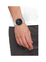 The Calvin Klein Slate Men’s Quartz Watch blends modern sophistication with effortless versatility, making it a standout accessory for any season. Its 43mm stainless steel case is paired with a refined silver mesh bracelet, creating a clean, contemporary look that suits both casual and formal settings. The diagonally brushed black dial features nested indexes, adding depth and subtle detail to its minimalist aesthetic. Powered by a reliable quartz movement, this timepiece ensures precise, low-maintenance performance day after day. The durable mineral crystal protects against scratches, maintaining the watch’s sleek appearance. Designed with Calvin Klein’s iconic understated elegance, the Slate watch is an ideal gift for him—stylish, functional, and timeless.