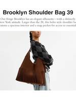 Ideal for work, travel, or everyday use, the Brooklyn Fringe Shoulder Bag holds a 15” laptop, making it the perfect companion for busy lifestyles. The structured yet soft silhouette features a secure magnetic snap closure and an inside snap pocket, ensuring your essentials remain organized and protected.