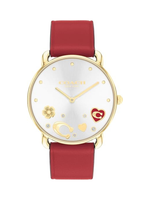 Coach Elliot Women’s 2H Quartz Watch – 36mm Gold-Tone Case, Red Calfskin Strap, Crystal Accents with Signature Heart Motif, Water Resistant 3ATM