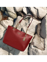 The tote’s 11 1/4" handle drop allows for comfortable hand or shoulder carry, while the Red Apple, Light Khaki Chalk, and Black color options make it a versatile and bold addition to your wardrobe.