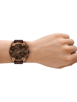 The Diesel Spiked Men’s Chronograph Watch DZ4698 is designed for men who want a timepiece that combines rugged style with functional precision. The 49mm brown stainless steel case houses a polished sunray brown dial, providing a bold, eye-catching aesthetic. Powered by quartz chronograph movement, it features three-hand analog timekeeping with subdials for minutes and seconds, offering reliable accuracy for daily wear. The brown genuine leather strap is self-adjustable for a personalized and comfortable fit, perfectly complementing the warm tones of the dial. Scratch-resistant mineral crystal protects the watch face from everyday wear, while water resistance up to 50m (5 ATM) allows safe use during short recreational swimming and showers. Combining Diesel’s signature edgy design with sophisticated detailing, the Spiked Chronograph is a versatile accessory suitable for both casual and dressy occasions.