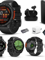 Elevate your performance with the Garmin Fenix 8 AMOLED Premium Multisport GPS Smartwatch. Featuring a 47mm slate gray case with a black silicone band, this elite smartwatch combines durability, style, and cutting-edge technology. The 1.3-inch AMOLED display provides crisp clarity, while the built-in LED flashlight ensures visibility in any environment. Equipped with Bluetooth, Wi-Fi, and USB connectivity, it syncs effortlessly across your devices. Designed for athletes and adventurers, it offers multisport training modes, daily workout memory, and advanced fitness and health tracking, including heart rate, sleep monitoring, and stress insights. This premium bundle includes thoughtful extras—USB adapters, a power bank, microfiber cloth, and wireless earbuds—to keep you connected and powered up wherever life takes you. Combining rugged construction with sophisticated functionality, the Garmin Fenix 8 is the ultimate smartwatch for those who demand performance and style in equal measure.