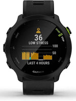 Take your running to the next level with the Garmin Forerunner 55, the ultimate GPS smartwatch designed for beginners and seasoned athletes alike. Featuring a sleek, lightweight design and 1.04-inch sunlight-visible display, this watch delivers real-time performance insights to keep you motivated. With daily suggested workouts, built-in GPS, PacePro™ technology, and recovery advisor, you’ll train smarter and more efficiently. The Forerunner 55 also includes wrist-based heart rate monitoring, women’s health tracking, stress tracking, and advanced sleep insights, giving you a complete view of your health. Stay connected with smartphone notifications and track your progress via the Garmin Connect™ app. Offering up to 20 hours of GPS mode or 2 weeks in smartwatch mode, this running watch combines durability, accuracy, and long-lasting performance—making it an essential training companion.
