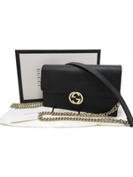 Elevate your style with the Gucci 615523 Women’s Shoulder Bag, a luxurious accessory that combines timeless design with functional elegance. Crafted from premium black calfskin leather, this bag features the iconic interlocking GG logo, a magnetic snap closure, and a sleek chain strap for versatile wear. The fully leather-lined interior includes eighteen card slots and one zip pocket, providing organized storage for daily essentials. With compact dimensions of 7.5" x 1.75" x 4.5" (LWH), it offers a refined silhouette perfect for day or evening occasions. Complete with Gucci care cards, dust bag, and original box, this piece exemplifies the brand’s signature craftsmanship, making it a standout addition to any luxury handbag collection.