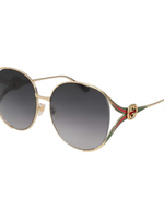 Gucci GG0225S Rectangular Sunglasses – Gold Frame, Grey Lenses, 63mm