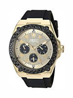 Elevate your wristwear with the GUESS Men’s Stainless Steel Quartz Watch, a perfect balance of modern sophistication and sporty appeal. This striking timepiece features a polished gold-tone stainless steel case accented with a black top ring and a comfortable, stain-resistant black silicone strap. The multi-function dial displays the day, date, and 24-hour time format, ensuring both style and practicality. Built with a durable mineral crystal to resist scratches and maintain clarity, this GUESS watch is also water-resistant up to 100 meters, making it suitable for everyday wear and adventure alike. Designed for confident men who appreciate timeless fashion and functionality, this watch embodies the iconic GUESS flair with enduring quality.
