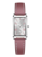The Hamilton American Classic Ardmore Quartz Watch exudes timeless elegance and precise Swiss craftsmanship. Powered by a Swiss quartz movement, this sophisticated timepiece offers accurate, low-maintenance timekeeping, ideal for those who appreciate style and reliability. Featuring a delicate 18.7mm x 27mm stainless steel case with a minimalist silver analog dial, the Ardmore strikes a perfect balance between subtlety and refinement. The rose leather strap adds a soft, feminine touch, secured by a pin buckle for comfortable, secure wear throughout the day. The scratch-resistant mineral crystal protects the dial, while water resistance up to 30 meters ensures it withstands everyday splashes. Backed by a 2-year international warranty, the Ardmore Quartz Watch is an exceptional accessory that pairs classic charm with modern Swiss precision, designed for elegant simplicity in any setting.