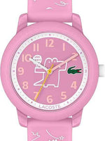 The Lacoste L.12.12 Kids' Watch brings the brand’s iconic sporty elegance to young wearers with a design that’s both durable and stylish. Featuring a 33mm round case with an easy-to-read dial, this three-hand quartz timepiece is crafted for everyday comfort and reliability. The silicone strap is soft, flexible, and sized perfectly for smaller wrists, while the secure buckle clasp ensures a snug fit. With water resistance up to 5 ATM (50 meters), it can withstand splashes, rain, and even brief swims, making it ideal for active kids. Powered by quartz movement, the watch guarantees precise and worry-free timekeeping. Available in a variety of playful colors such as pink, green, blue, and red, the L.12.12 Kids’ Watch is the perfect blend of practicality, durability, and Lacoste’s timeless sporty charm.