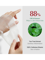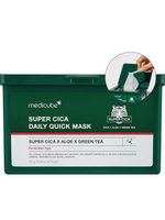 Soothe, refresh, and hydrate your skin in just one minute with the Medicube Super Cica Daily Quick Facial Masks. Infused with 88% Centella Asiatica (Cica), these vegan, hypoallergenic masks deliver an instant cooling sensation and intense moisturization, leaving your skin calm, revitalized, and glowing. Formulated with Super Cica 7 Complex, Tea Tree Extract, and Betaine, they help reduce redness, protect the skin barrier, and provide daily defense against environmental stress. Perfect for all skin types, each sheet is free from artificial fragrances and colors and has been dermatologically tested for safety. With 30 sheets in one pack, this convenient skincare solution is ideal for a quick morning boost or a soothing bedtime treatment — giving you nourished, balanced, and radiant skin every day.