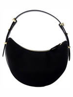 The Prada Arqué Small Shoulder Bag (Model 1BC194) is a study in minimalist sophistication and sustainable innovation. Crafted in Italy from Prada’s signature Re-Nylon—a regenerated material made from ocean plastics—and brushed leather, this design exudes both modern edge and timeless luxury. The deep black exterior is complemented by gold-tone hardware and the iconic enameled triangle logo, emblematic of Prada’s quiet prestige. Its curved silhouette rests elegantly under the arm, while the adjustable leather strap allows versatile styling as a shoulder or crossbody bag. The zip-top closure opens to a smooth leather-lined interior with a discreet slip pocket, ensuring your essentials are carried with grace and security. A refined choice for those who appreciate sustainability without compromise.