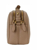The Prada Women's Beige Vitello Phenix Leather Double Zip Crossbody Bag is a refined essential for the modern woman. Expertly crafted from Cammeo beige pebbled Vitello Phenix leather, this crossbody showcases Prada’s signature elegance and enduring quality. The gold-tone Prada Milano logo adorns the front, complemented by sleek hardware and dual top zip closures for secure organization. Its two spacious compartments open to a jacquard-lined interior, offering ample room for daily essentials while maintaining a compact, structured silhouette. Finished with an adjustable leather strap, this versatile piece transitions seamlessly from day to evening.