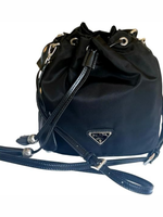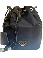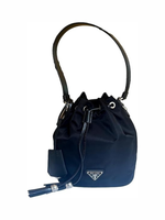 Prada Women's Re-Nylon Black Tassel Drawstring Bucket Bag – Sustainable Designer Handbag 1BE067