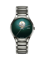 The Rado True Round Secret Blue Dial is a sophisticated Swiss automatic watch that combines contemporary elegance with cutting-edge materials. Its 40mm round case and bracelet crafted from plasma high-tech ceramic and titanium offer lightweight durability and a distinctive metallic sheen. The open-heart dial in secret blue provides a captivating view of the Swiss automatic movement, celebrating mechanical craftsmanship in a modern aesthetic.