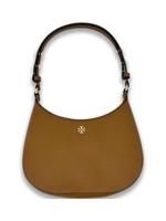 The Tory Burch 150258 Emerson Shoulder Bag is a timeless blend of fashion and functionality. Made with luxurious Saffiano leather in a rich Moose Brown tone, this shoulder bag stands out thanks to its elegant gold-tone hardware and refined design.